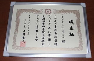 ホーム > CSR:社会貢献 > 宇和島城の城主証 CSR CSR:社会貢献 宇和島城の城主証 国の重要文化財でもある宇和島城を末永く保存継承したいという想いに賛同し、微力ではありますが寄付をいたしました。 CSR ルーツグループのCSR 事業活動と社会的責任 環境への取り組み 人材を資産に 社会貢献 赤い羽根 クリック募金 持ち帰り清掃 人権啓発の推進 災害支援活動 環境保全 エコキャップ回収運動 国境なき医師団 ふるさとひめじ応援寄附金 宇和島城の城主証 益財団法人 日本ユニセフ協会 ピンクリボン寄附金 コラボ・スクール寄附金 白神山地財団 屋久島観光協会 お問い合わせはこちら