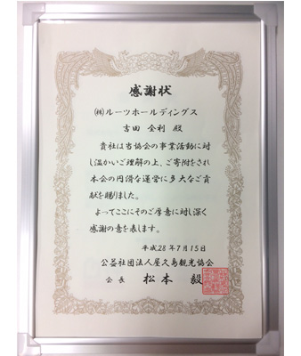 公益社団法人屋久島観光協会への事業活動活動に深く感銘を受け、寄附をご協力をさせていただきました。